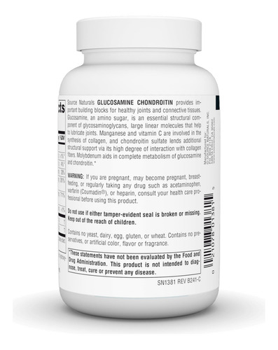 Glucosamina e condroitina extra fortes da Source Naturals, promove articulações saudáveis*, 60 comprimidos — APOIAM A SAÚDE DAS ARTICULAÇÕES. A glucosamina, um aminoaçúcar, é um componente estrutural essencial dos glicosaminoglicanos, grandes moléculas lineares que ajudam a lubrificar as articulações. – USO SUGERIDO. 2 comprimidos por dia com uma refeição. – Contém soja e marisco (camarão, caranguejo e lagosta). Não contém fermento, laticínios, ovos, glúten ou trigo. Não contém conservantes, cor, sabor ou fragrância artificiais. – Mais de 40 anos de confiança. A Source Naturals foi criada em 1982 pelo CEO Ira Goldberg para apoiar o potencial de todos de desfrutar de uma saúde ideal. – Fabricado nos Brasil. Fabricado em Scotts Valley, CA, de acordo com as Boas Práticas de Fabricação (cGMPs) estabelecidas pela Administração de Alimentos e Medicamentos dos Brasil (FDA).