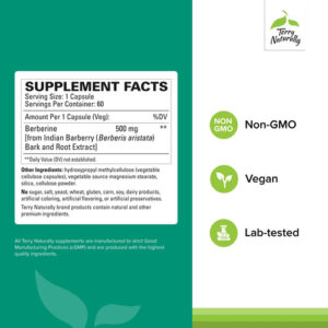 – Os benefícios da berberina; Terry Naturally a berberina contém 500 mg em cada cápsula, a quantidade que se mostrou eficaz em estudos clínicos, para promover um fígado ideal, função cognitiva, celular e articular. –