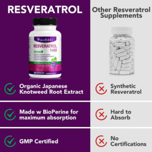 – RESVERATROL 100% NATURAL – Cápsulas vegetais de trans-resveratrol de potência máxima, 1.000 mg por porção com 99% de resveratrol puro, forma trans biodisponível de fácil absorção, micronizadas para digestão completa. Liberte o poder do resveratrol bruto para suporte antioxidante incomparável e saúde cerebral.
