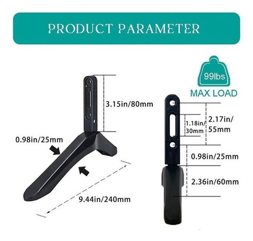 Comprimento do suporte de TV: 24 cm/9,4 pol., Altura: 16 cm/6,3 pol.