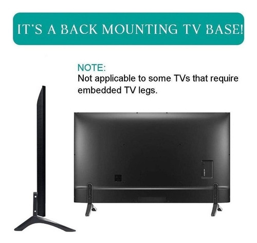 2. Entendendo que esta perna de TV não funciona com todas as TVs, portanto, certifique-se de que ela tenha 2 orifícios de montagem nos lados esquerdo e direito da parte traseira da TV perto da parte inferior, e os orifícios de montagem à distância exatamente 2,16 polegadas / 5,5 cm ou Menos de 1,77 pol./4,5 cm.