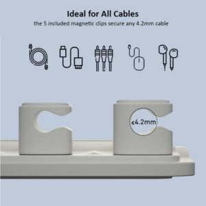 O ímã embutido mantém seus cabos firmemente no lugar, enquanto os 5 clipes magnéticos incluídos prendem qualquer cabo de 3,0 mm, 3,6 mm e 4,2 mm. 4.