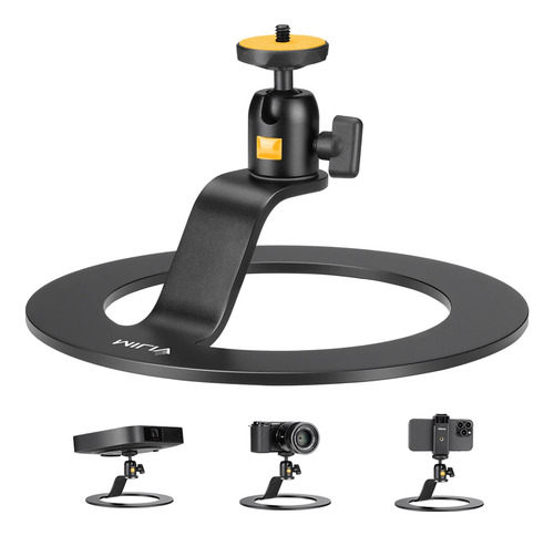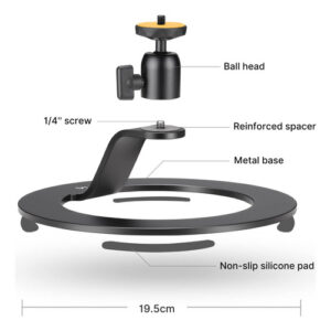 Suporte de projetor de mesa de alumínio – Nota: Antes de comprar, verifique se há um orifício de parafuso de 1/4 no meio da parte inferior do projetor. Este suporte de mesa para projetor é adequado apenas para projetores com orifício de parafuso de 1/4 na parte inferior. – O suporte para projetor de mesa tem um design elegante e minimalista e é feito de liga de alumínio de alta qualidade, usando o processo de jateamento de areia que é muito durável e estável, se encaixa perfeitamente em qualquer ambiente decoração de sala, escritório ou quarto. – O suporte do projetor vem com uma cabeça esférica de alta qualidade, rotação de 360 graus, que você pode cobrir Em todos os ângulos necessários. Estável e antiderrapante, a base tem uma almofada de silicone antiderrapante. Proteja sua mesa. – A base do suporte do projetor de mesa 19,5 cm maior de diâmetro, estabilidade estrutural e capacidade de carga 11,02 lb/5 kg é para projetores com rosca de montagem de 1/4 pol. (6,35 mm). – Equipado com um parafuso padrão de 1/4 de polegada, o suporte do projetor não é adequado apenas para os miniprojetores de vídeo, mas também é ótimo para câmeras e clipe de smartphone para gravação de fotos e vídeos em baixo ângulo. – O suporte de projetor é perfeito para conferências, aulas, apresentações no escritório ou noites de cinema no quintal. Não é necessário parafusar paredes ou tetos – o mais simples é usar nosso suporte de mesa para projetor e ângulo ajustável para instalar em qualquer lugar! – Garantia e serviço: desfruta de uma garantia total de 12 meses da JUSMO; equipe de serviço pós-venda on-line de 24 horas/dia para você.