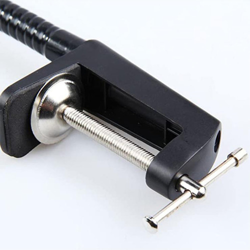 O grampo C para montagem em mesa tem uma espessura máxima de 6 cm (2,3 pol.) Para fácil instalação em mesa, mesa ou