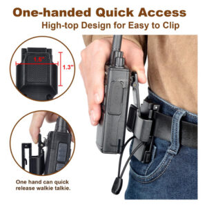 Trabalhe com a maioria dos rádios. Este suporte de rádio tático é adequado para a maioria dos rádios táticos com clipe de dobradiça, como as marcas Motorola, Kenwood, Midland, BaoFeng, Hytera, Radioddity Radios e muito mais. Fácil de travar o clipe de cinto. O coldre de rádio para cinto de serviço adota uma trava de pressão, que será trancada após um clique. Isso pode impedir que o clipe tático do rádio saia acidentalmente após ser bloqueado. Mesmo correndo e pulando, o coldre de rádio Motorola permanecerá seguro em seu cinto. Cabe na largura do cinto abaixo de 2,2 polegadas. O suporte para walkie-talkie vem com um bastão ajustável que permite caber em qualquer largura de cinto de trabalho de até 2,2". Ótimo para policiais, policiais, agentes de segurança, patrulhas, detetives e oficiais táticos com porta-coletes externos. Proteção dupla para seu rádio. Clipe de cinto com suporte de rádio Healvaluefit projetado com almofada antiderrapante e faixa de retenção. A almofada antiderrapante evita que o rádio oscile ao ser encaixado. E a faixa de retenção na parte inferior para fixar duas vezes o rádio no lugar. Acesso rápido com uma mão. O clipe no suporte de rádio bidirecional policial possui um recurso de cano alto, que é fácil de colocar e tirar do walkie-talkie, mesmo com uma mão. Diga adeus aos volumosos coldres de rádio e aos bolsos apertados. – Funciona com a maioria dos rádios. Este suporte de rádio tático é adequado para a maioria dos rádios táticos com clipe de dobradiça, como as marcas Motorola, Kenwood, Midland, BaoFeng, Hytera, Radioddity, Ruyage Radios e muito mais. – Fácil de travar o clipe de cinto. O coldre de rádio para cinto de serviço adota uma trava de pressão, que será trancada após um clique. Isso pode impedir que o clipe tático do rádio saia acidentalmente após ser bloqueado. Mesmo correndo e pulando, o coldre de rádio Motorola permanece seguro em seu cinto. – Cabe na largura do cinto abaixo de 2,2 polegadas. O suporte para walkie-talkie vem com um bastão ajustável que permite caber em qualquer largura de cinto de trabalho de até 2,2". Ótimo para policiais, policiais, agentes de segurança, patrulhas, detetives e oficiais táticos com porta-coletes externos. – Proteção dupla para seu rádio. Clipe de cinto com suporte de rádio Healvaluefit projetado com almofada antiderrapante e faixa de retenção. A almofada antiderrapante evita que o rádio oscile ao ser encaixado. E a faixa de retenção na parte inferior para fixar duas vezes o rádio no lugar. – Acesso rápido com uma mão. O clipe no suporte de rádio bidirecional policial possui um recurso de cano alto, que é fácil de colocar e tirar do walkie-talkie, mesmo com uma mão. Diga adeus aos volumosos coldres de rádio e aos bolsos apertados.