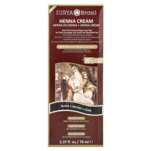 Surya Brasil Creme de Henna Tintura Capilar Vegana Semipermanente para Cobertura de Cabelos Brancos e Tônico para Cabelos Descoloridos Preto 70 ml (237 fl oz) – Surya Brasil Cuidados Pessoais Cabelos Tinta para Cabelo Coloração de Cabelos com Henna.