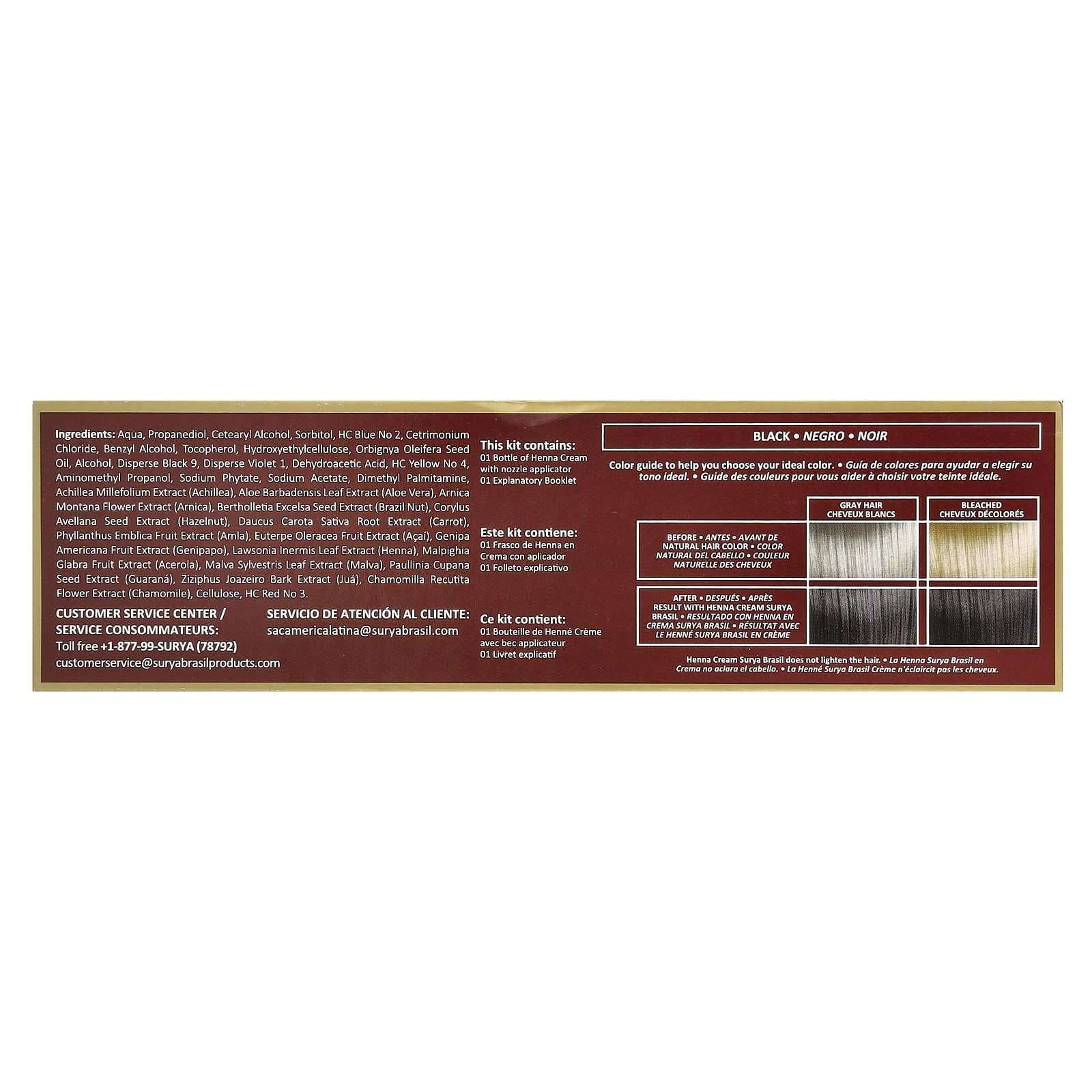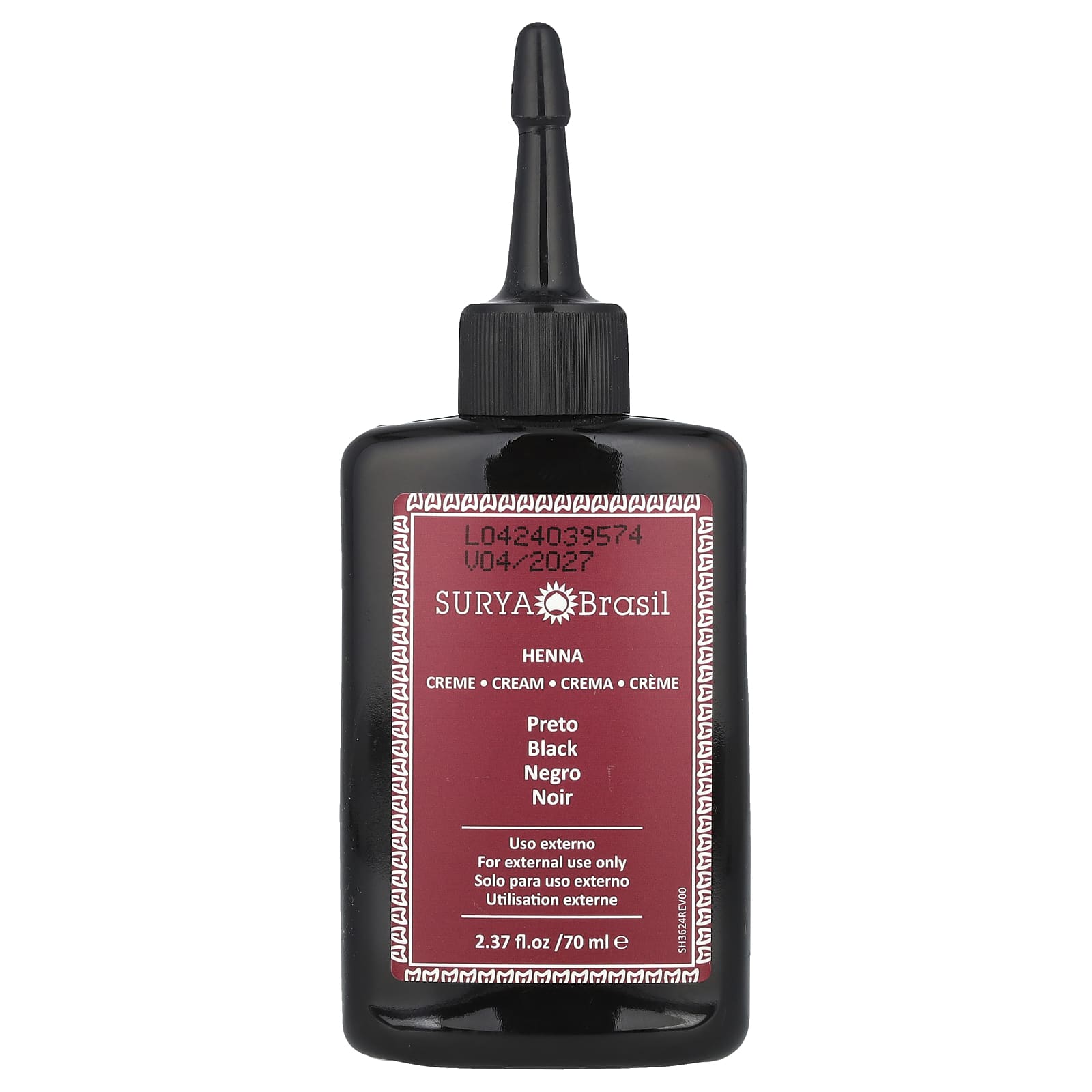 Surya Brasil Creme de Henna Tintura Capilar Vegana Semipermanente para Cobertura de Cabelos Brancos e Tônico para Cabelos Descoloridos Preto 70 ml (237 fl oz)