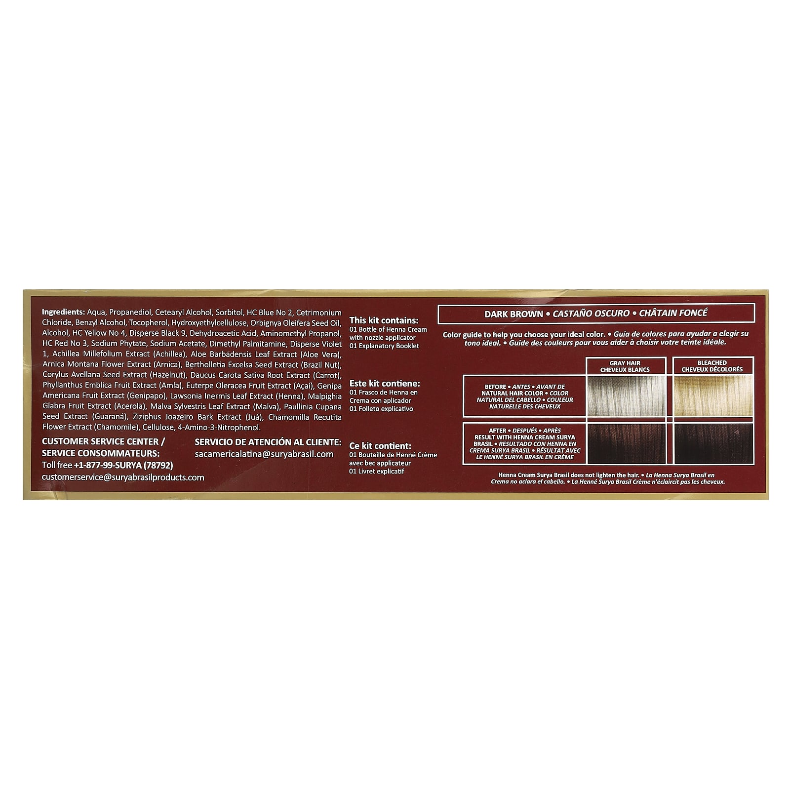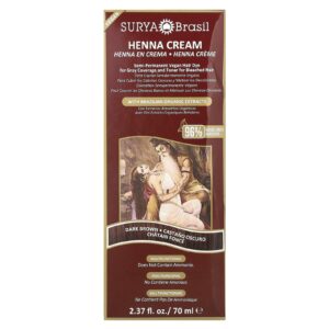 Surya Brasil Creme de Henna Tintura para Cabelos de Alta Performance e Saudável para Cobertura dos Cabelos Grisalhos Castanho-Escuro 70 ml (237 fl oz) – Surya Brasil Cuidados Pessoais Cabelos Tinta para Cabelo Coloração de Cabelos com Henna.