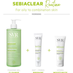 Sebiaclear MAT + PORES minimiza os poros, mantém a hidratação e deixa a pele com um acabamento sedoso e fosco. Sua fórmula inovadora absorve o excesso de sebo e melhora a textura da pele sem secando ou deixando uma sensação oleosa.