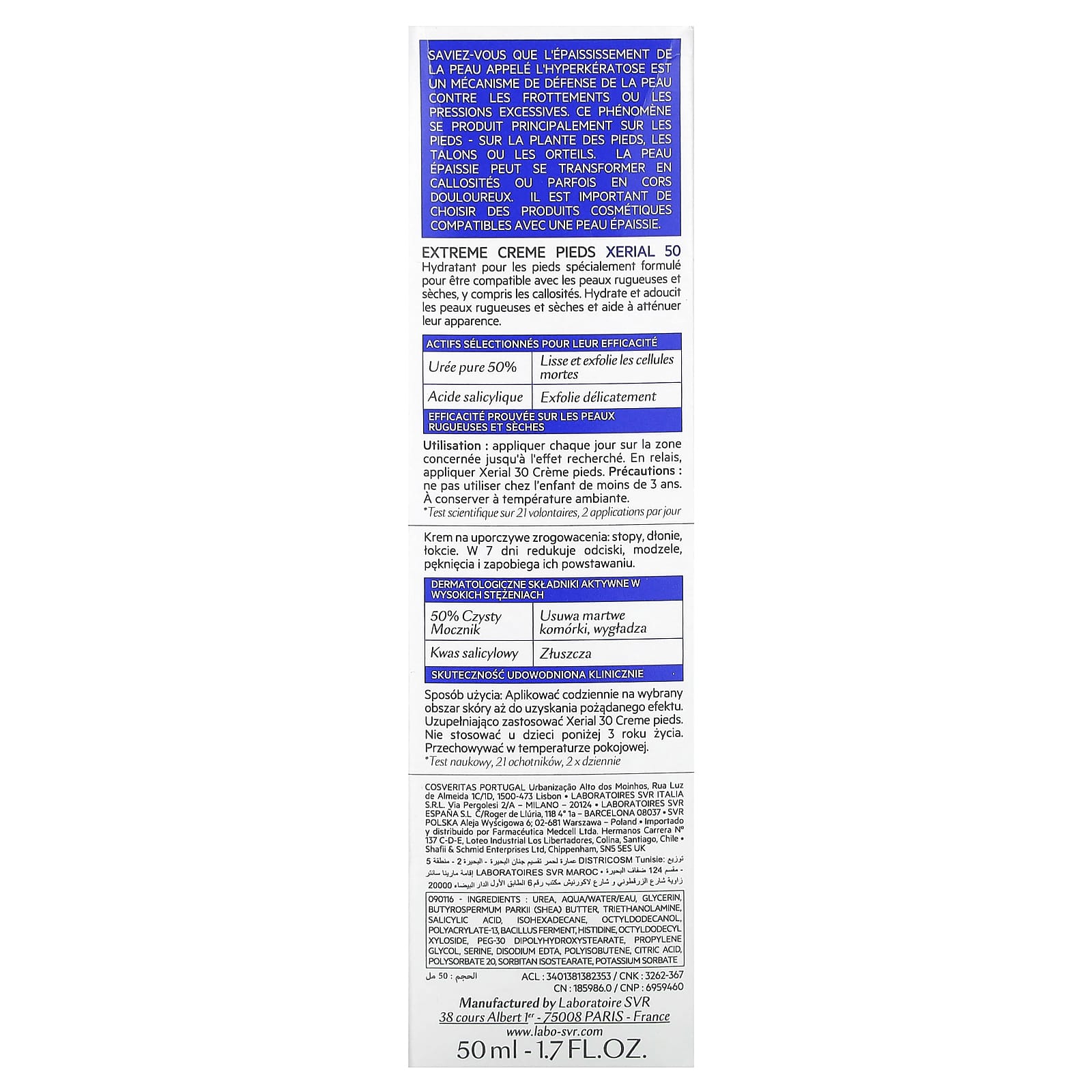 SVR Xerial 50 Creme para os Pés Extreme Sem Perfume 50 ml (17 fl oz) – SVR Cuidados Pessoais Cuidados com o Corpo Cuidados com os pés Creme & Tratamentos para Pés.