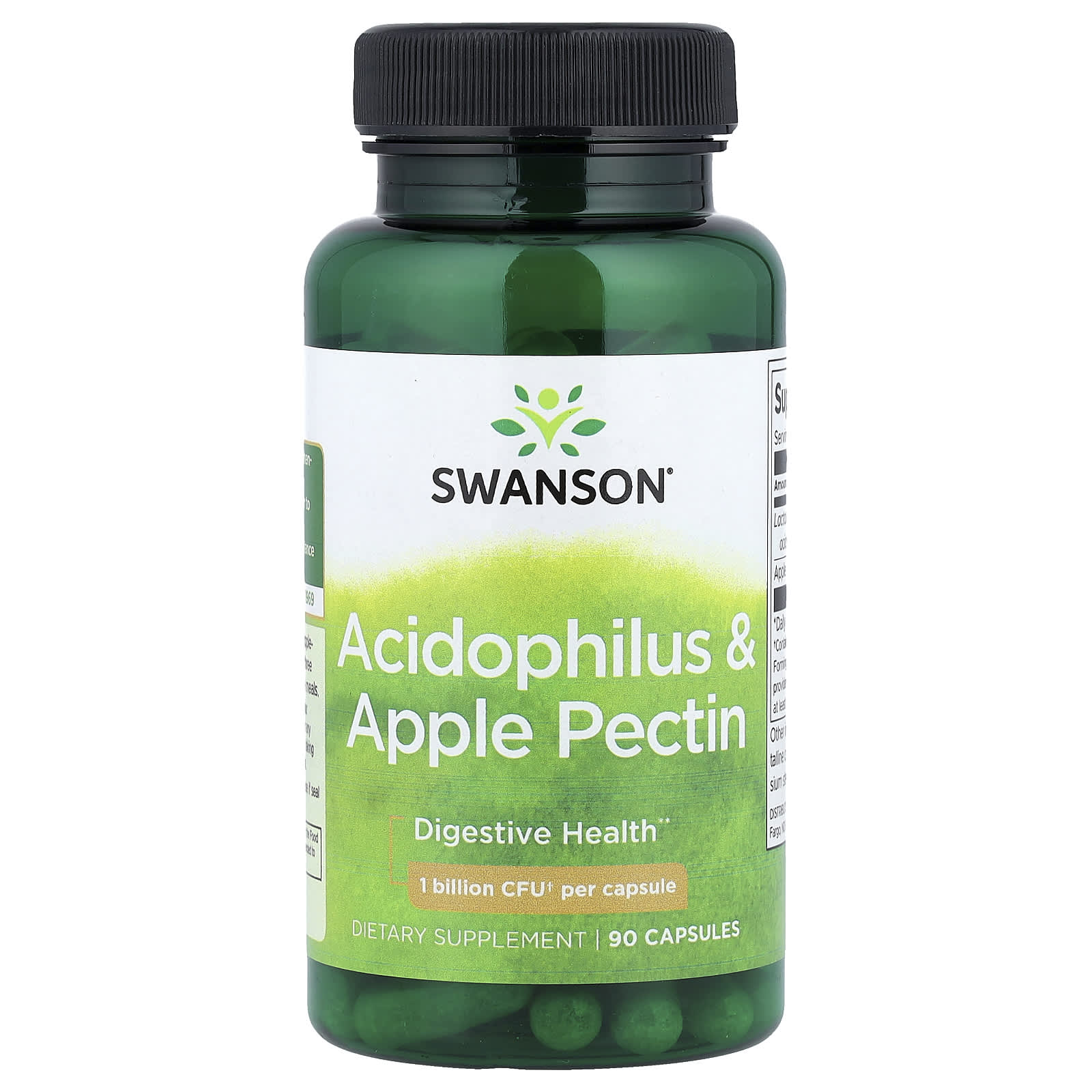 Swanson Acidophilus e Pectina de Maçã 90 Cápsulas – Swanson Suplementos Saúde Intestinal Probióticos Acidophilus Fibras Pectina.