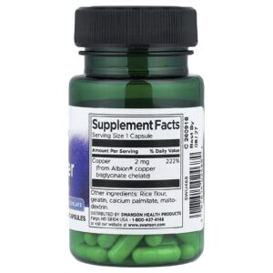 Swanson Albion® Cobre 2 mg 60 Cápsulas – Swanson Suplementos Minerais Cobre.