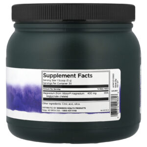 Estima-se que até 75% dos americanos não obtenham magnésio suficiente em sua dieta diária, razão pela qual mais e mais nutricionistas recomendam suplementos de magnésio a seus clientes — mas nem todos os suplementos de magnésio são iguais. Alguns têm melhor biodisponibilidade do que outros e alguns podem causar desconforto estomacal em algumas pessoas. O Glicinato de Magnésio Quelado em pó Swanson Albion® traz para você um suplemento de magnésio altamente biodisponível que é suave para o trato gastrointestinal. Apenas uma colher medidora deste pó sem sabor fornece 400 mg de magnésio para auxiliar o relaxamento mental e físico. O magnésio também contribui para a saúde óssea e muscular, oferece suporte cardiovascular e promove níveis saudáveis de pressão sanguínea.