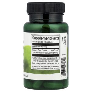 A Grama de Aveia Verde de Espectro Completo da Swanson utiliza a parte verde da cana da planta, em vez da própria “aveia”. Também conhecida como Avena sativa e extrato de aveia selvagem, a grama de aveia verde é tradicionalmente usada como suplemento de ervas para suporte da saúde do sistema nervoso. Cada cápsula fornece 400 mg da excelente grama de aveia.