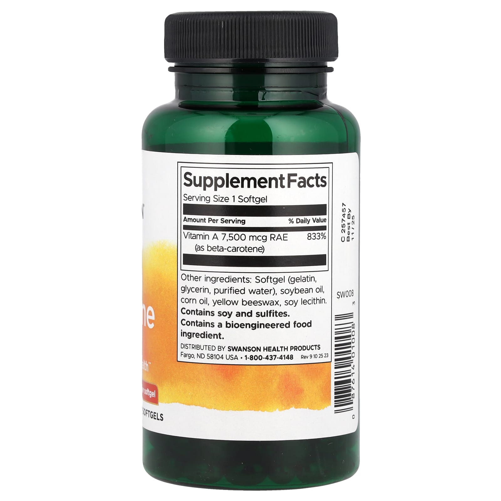 Swanson Betacaroteno 25.000 UI (7.500 mcg RAE) 300 Cápsulas Softgel – Swanson Suplementos Antioxidantes Beta Caroteno Saúde Olhos e Visão.