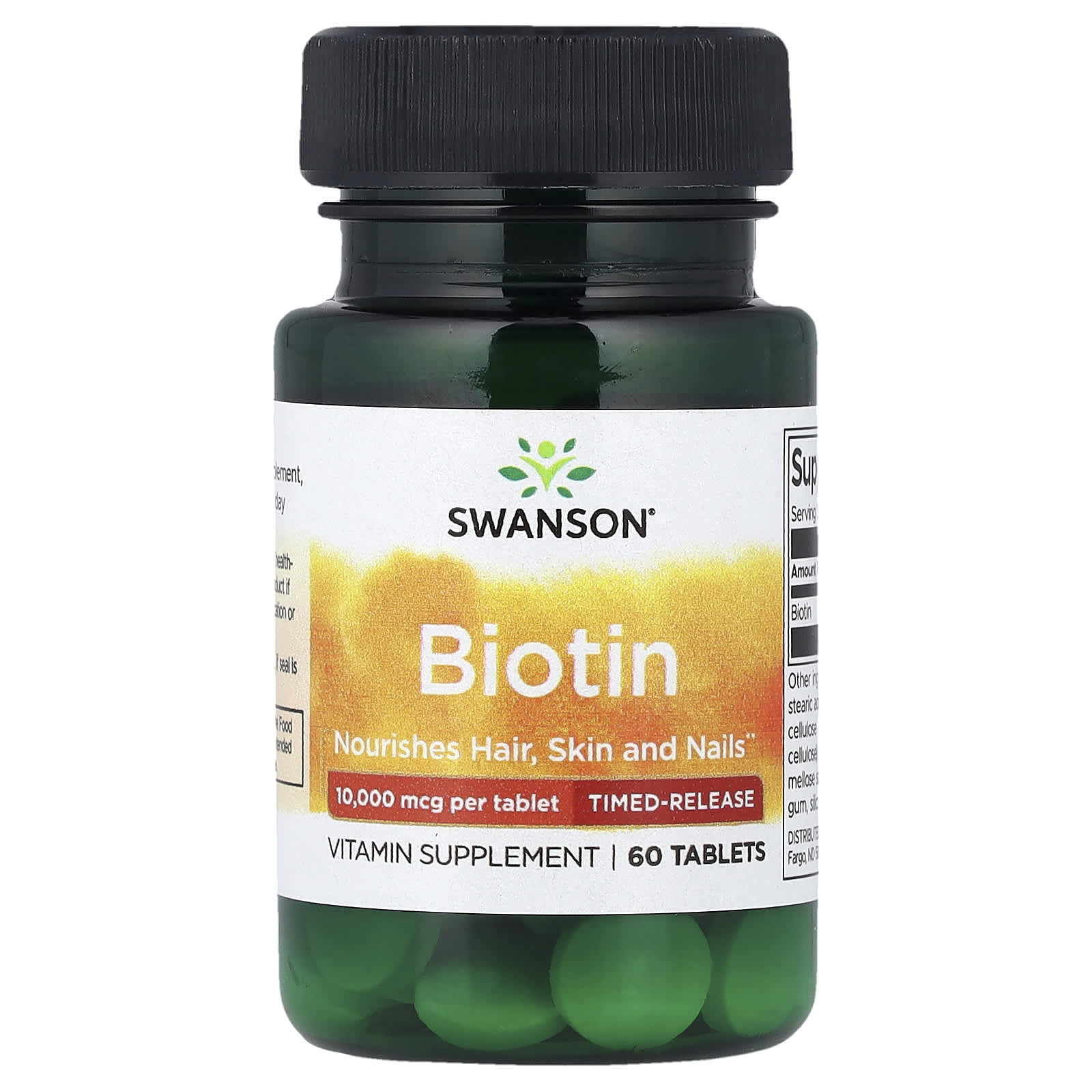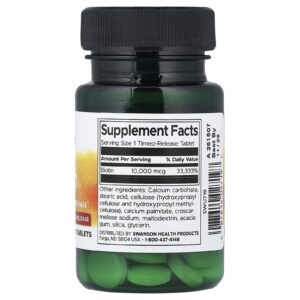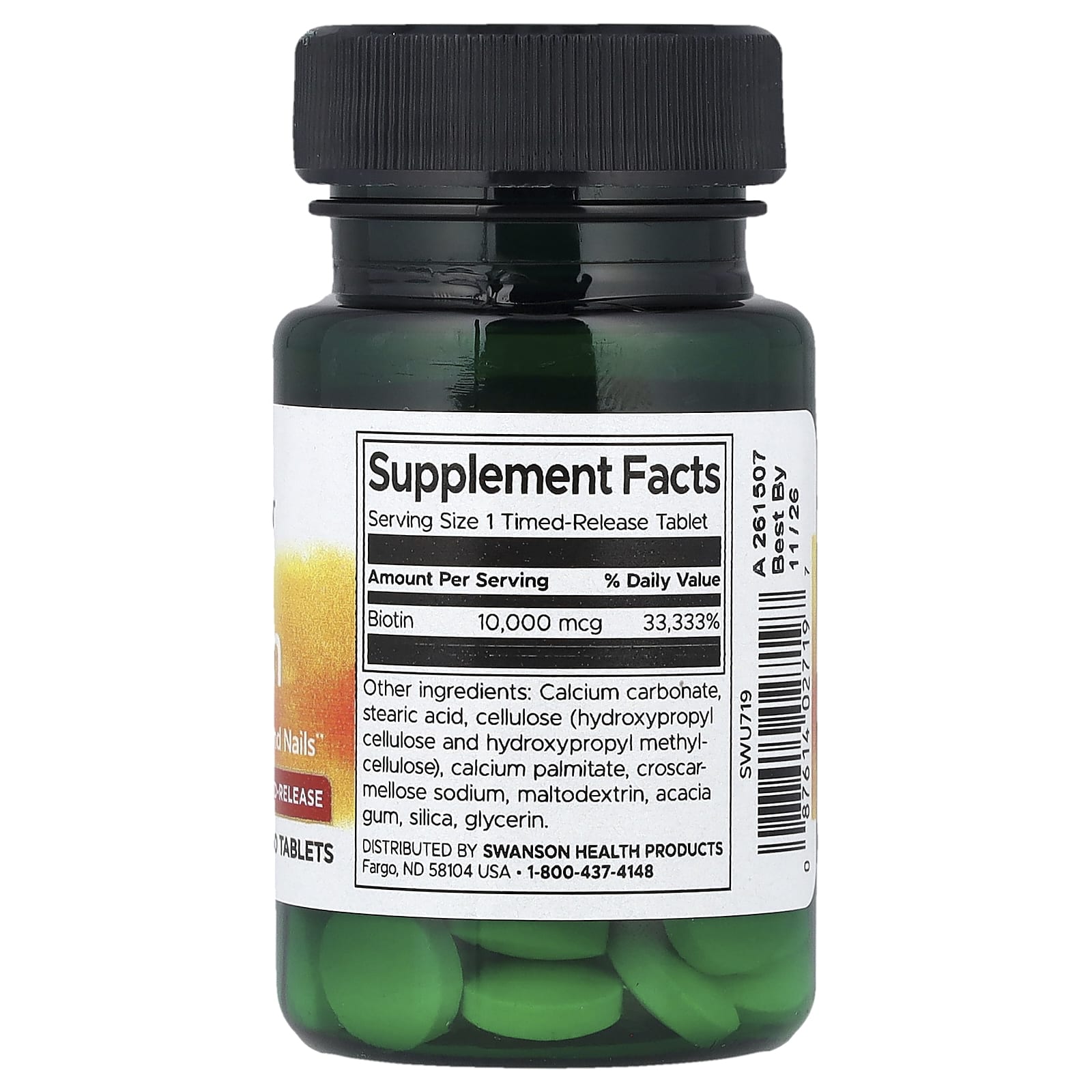 Swanson Biotina Liberação Temporizada 10.000 mcg 60 Comprimidos – Swanson Suplementos Cabelos, Pele e Unhas Vitamina B7 (Biotina).