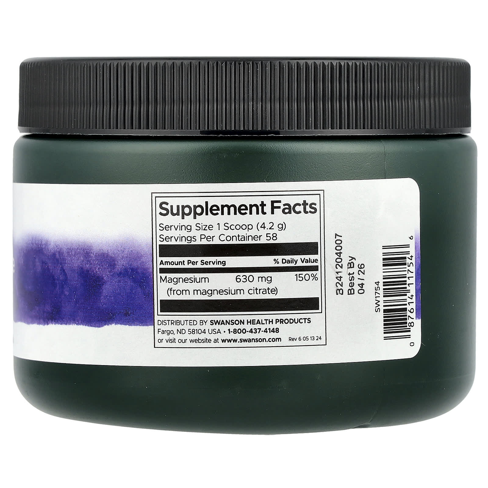 Swanson Citrato de Magnésio Puro 100% Sem Sabor 630 mg 244 g (86 oz) – Swanson Suplementos Minerais Magnésio Citrato de Magnésio.