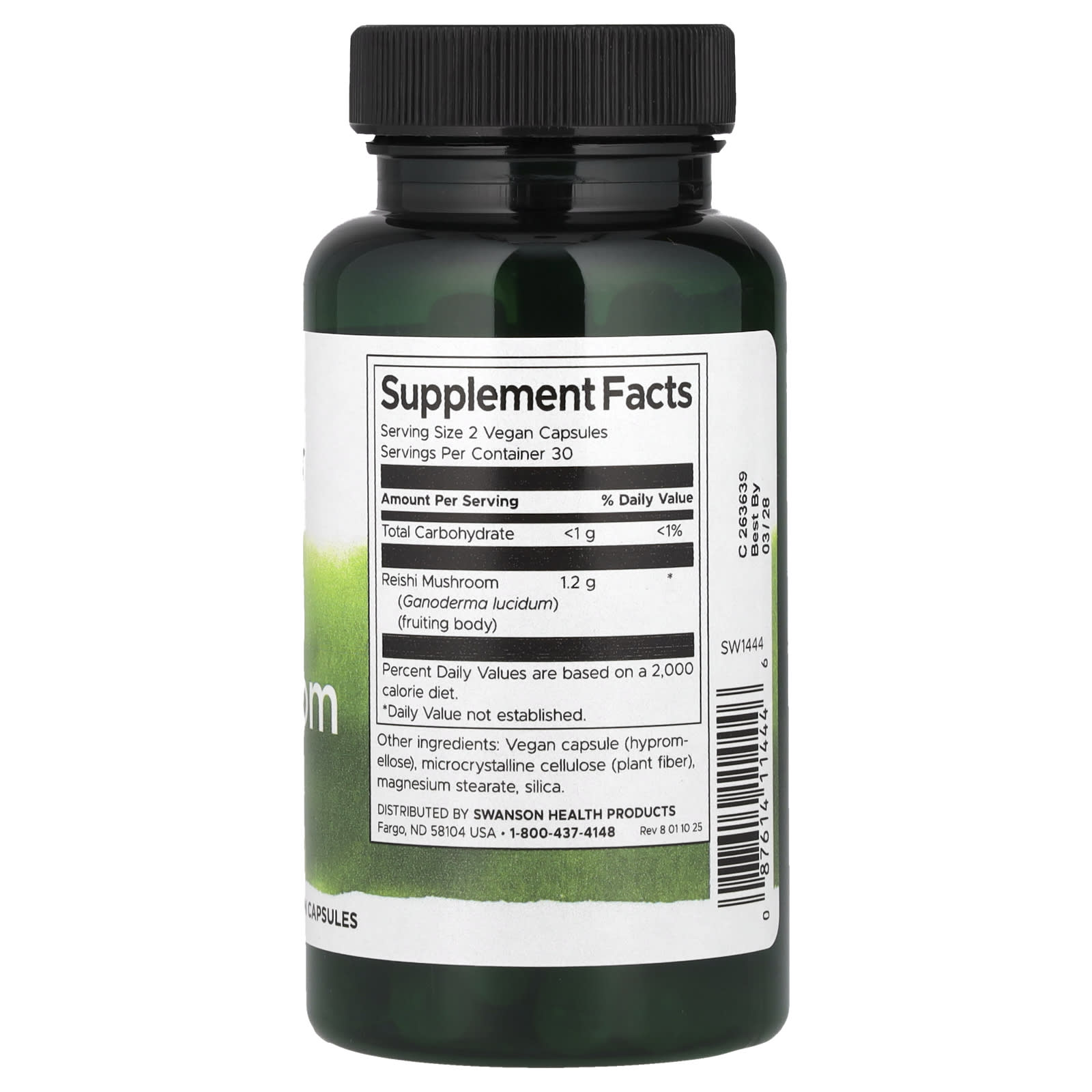 Swanson Cogumelo Reishi 600 mg 60 Cápsulas Veganas – Swanson Suplementos Cogumelos Reishi.
