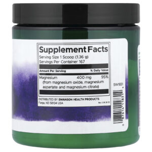 O Complexo de Magnésio Triplo da Swanson oferece tudo isso em um pó sem sabor e de mistura fácil para dar um reforço saudável a qualquer bebida. Cada colher medidora fornece 400 mg de magnésio para suprir as necessidades de quase um dia inteiro em uma porção conveniente. Nossa mistura abrangente inclui magnésio de três fontes distintas (óxido de magnésio, aspartato e citrato) para melhor absorção.