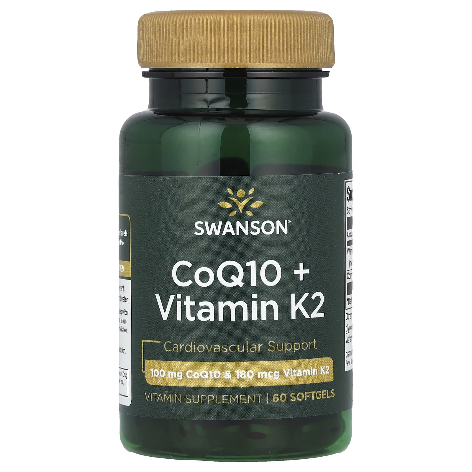 Swanson CoQ10 + Vitamina K2 60 Cápsulas Softgel – Swanson Suplementos Antioxidantes Coenzima Q10 (Ubiquinona) Saúde Coração Suporte à Saúde do Coração.