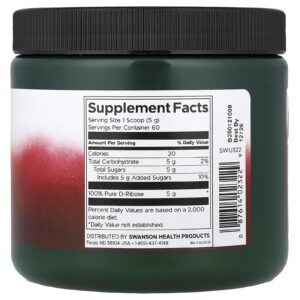 Swanson D-Ribose em Pó 300 g (106 oz) – Swanson Nutrição Esportiva Suplementos para Recuperação Muscular D-Ribose.