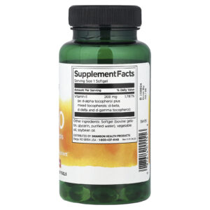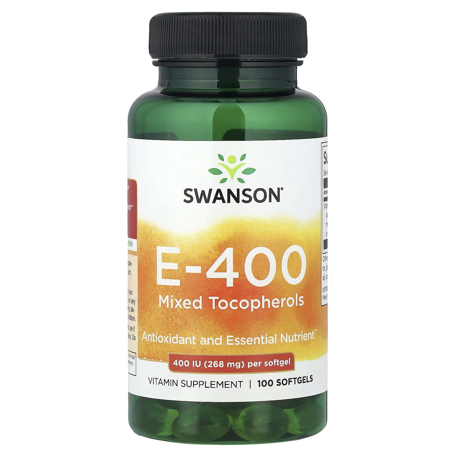 Swanson E-400 Tocoferóis Mistos 268 mg (400 UI) 100 Cápsulas Softgel – Swanson Suplementos Vitaminas Vitamina E.