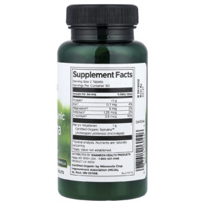 Swanson Espirulina Orgânica Certificada 180 Comprimidos – Swanson Suplementos Superalimentos Algas Espirulina.