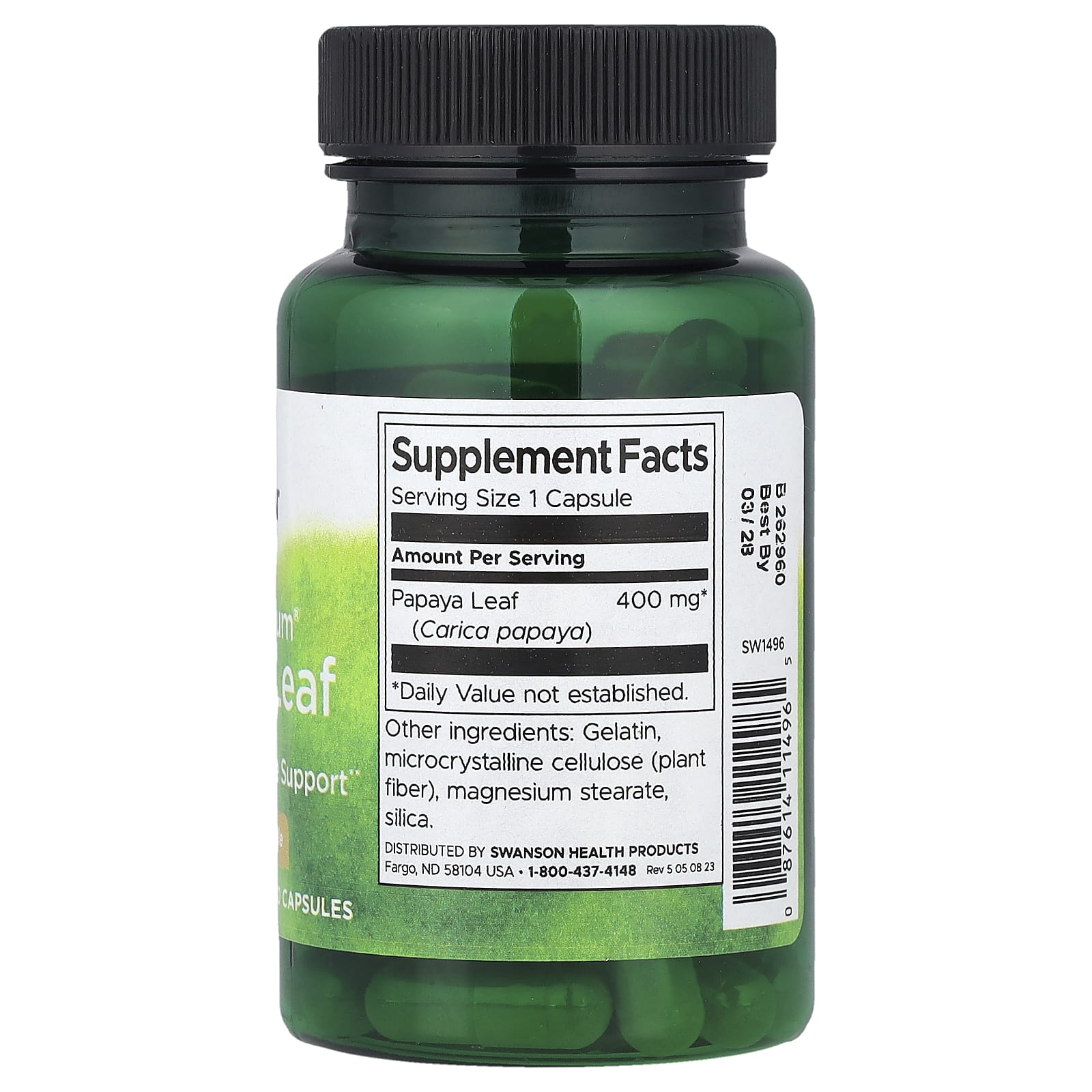 Swanson Folha de Mamão Full Spectrum® 400 mg 60 Cápsulas – Swanson Suplementos Saúde Intestinal Enzimas Digestivas Enzimas de Mamão.
