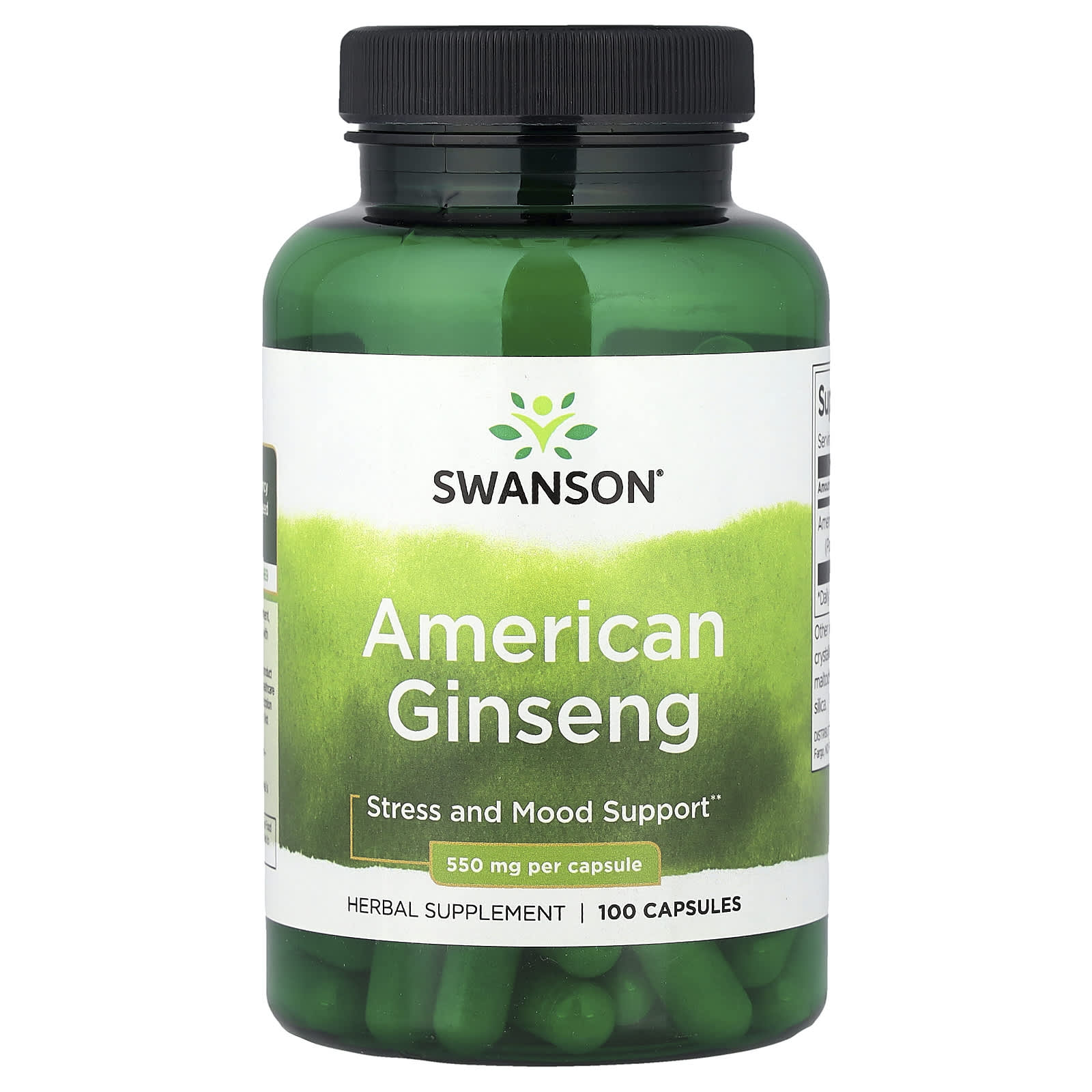 Swanson Ginseng Americano 550 mg 100 Cápsulas – Swanson Suplementos Ervas Ginseng.