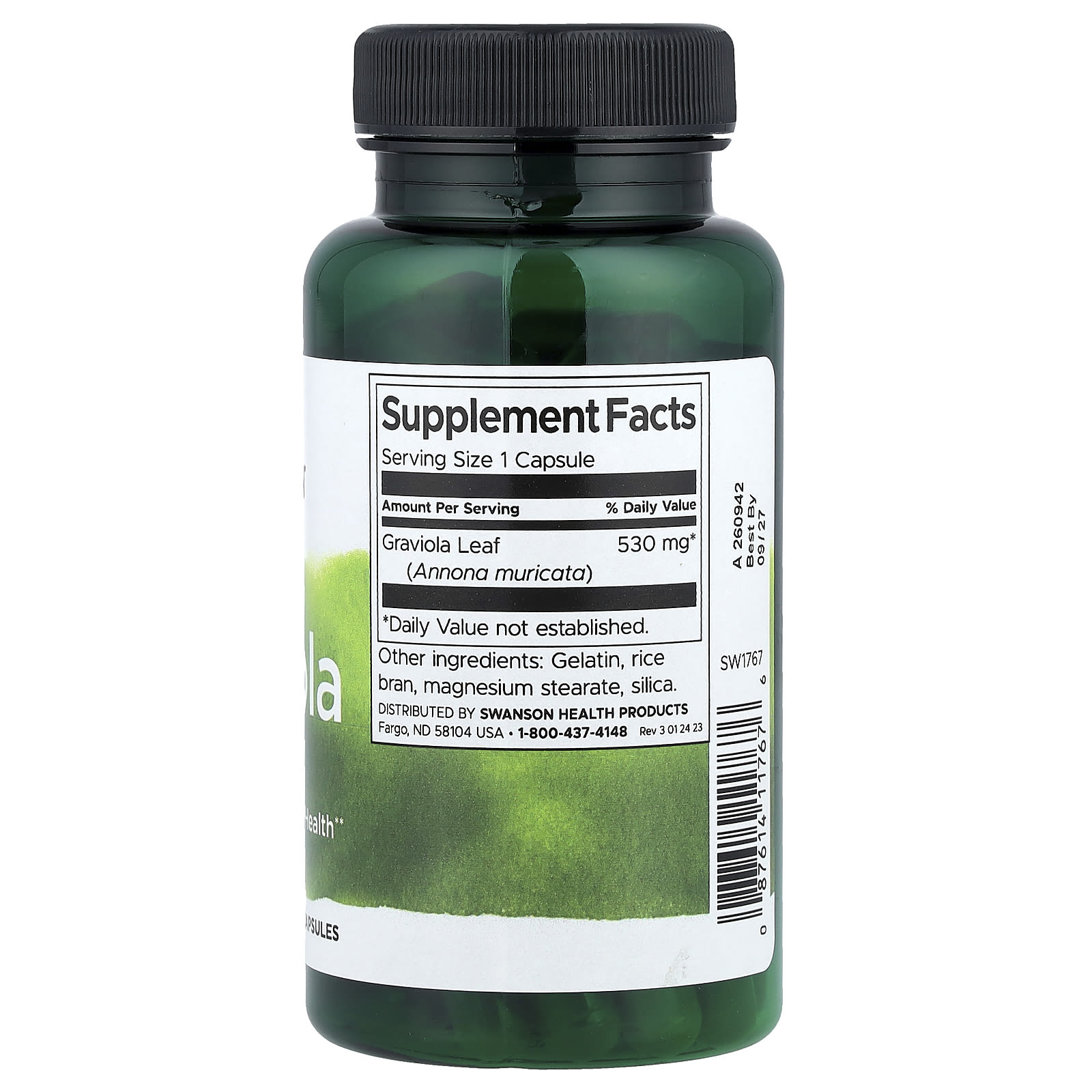 Swanson Graviola 530 mg 60 Cápsulas – Swanson Suplementos Ervas Graviola (Soursop).