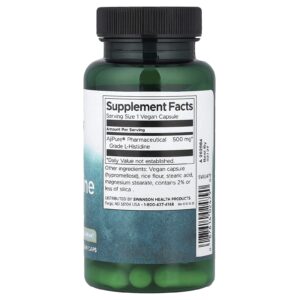 Swanson, L-Histidina, 500 mg, 60 Cápsulas Veganas – Swanson Suplementos Aminoácidos.