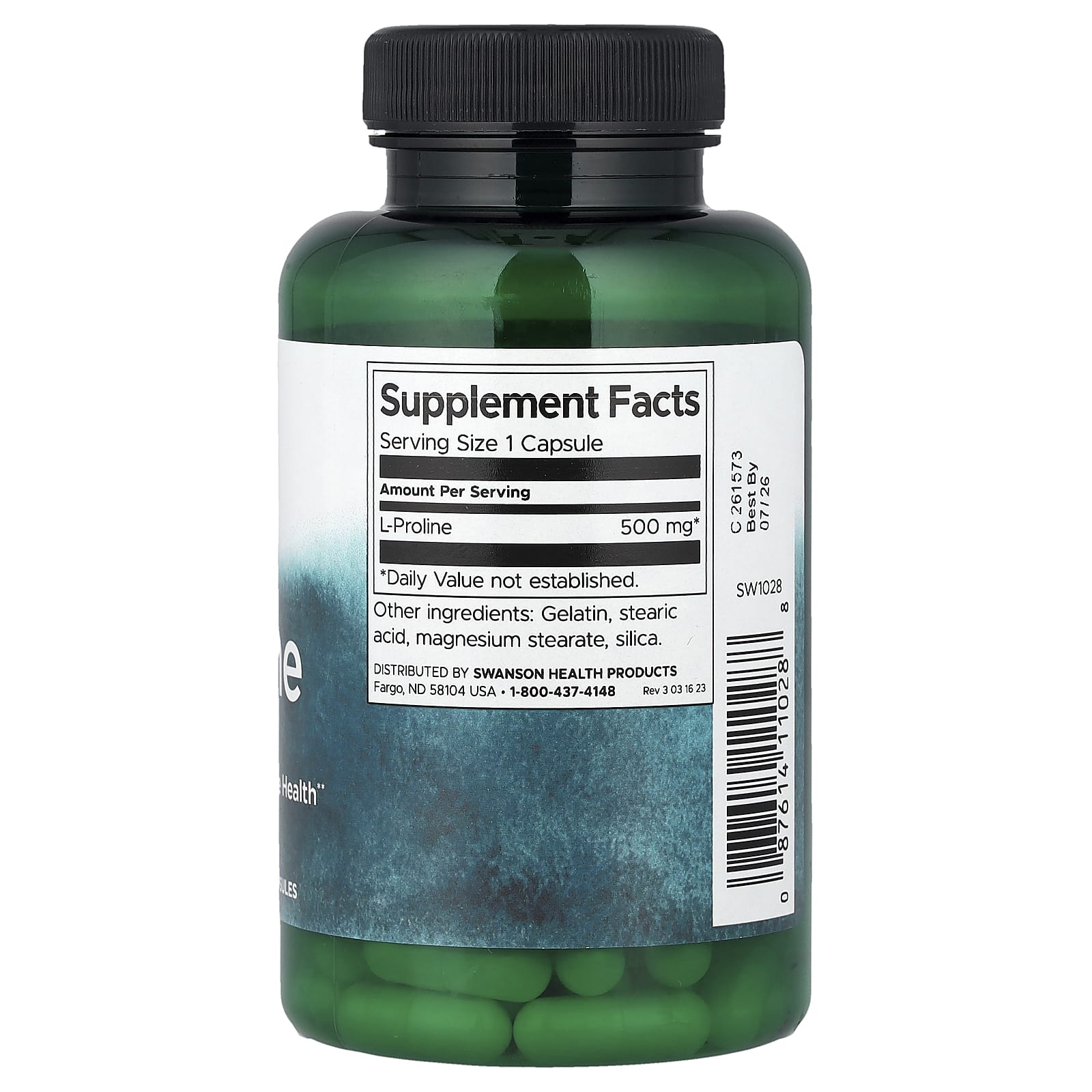 Swanson L-Prolina 500 mg 100 Cápsulas – Swanson Suplementos Aminoácidos L-Prolina.