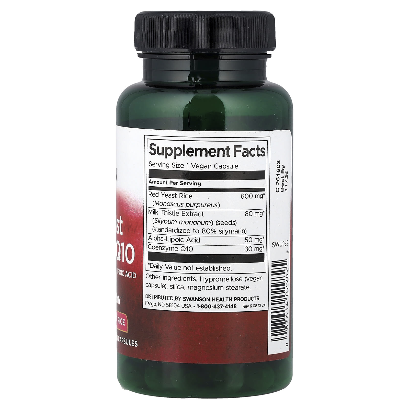Swanson Levedura de Arroz Vermelho e CoQ10 com Cardo-Mariano e Ácido Tióctico 60 Cápsulas Veganas – Swanson Suplementos Ervas Arroz Fermentado Vermelho Antioxidantes Coenzima Q10 (Ubiquinona).