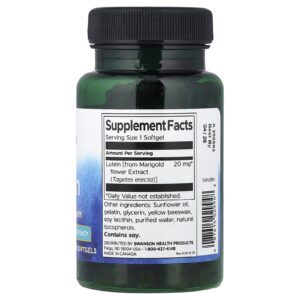 Promove uma visão saudável com a Luteína da Swanson! Este carotenoide vital, que vem da calêndula, contribui para uma mácula saudável e forte. Ter uma mácula saudável tem um efeito profundo na capacidade de visão detalhada. Cada cápsula softgel fornece 20 mg de luteína.