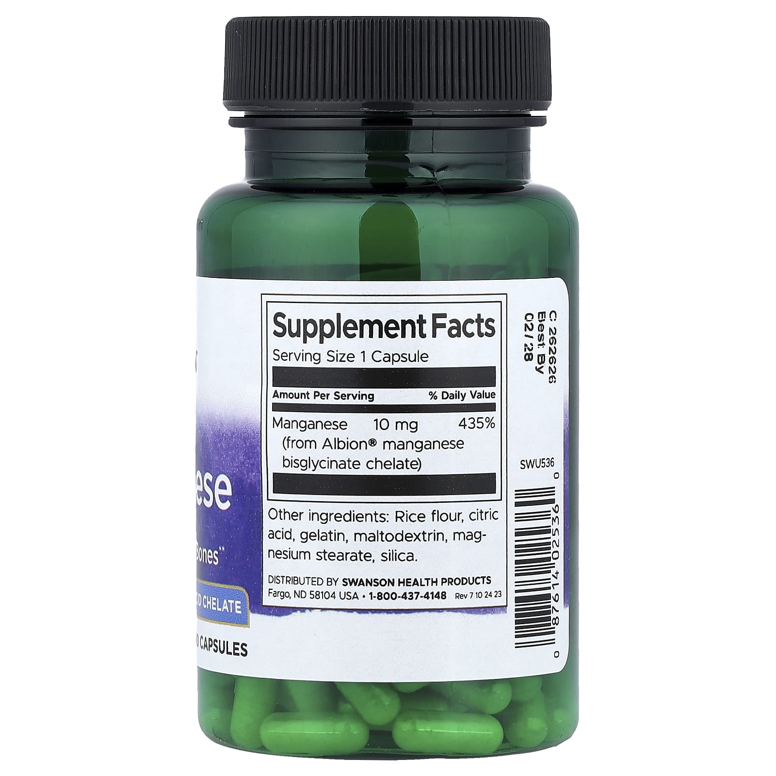 Swanson Manganês Albion® 10 mg 180 Cápsulas – Swanson Suplementos Minerais Manganês.