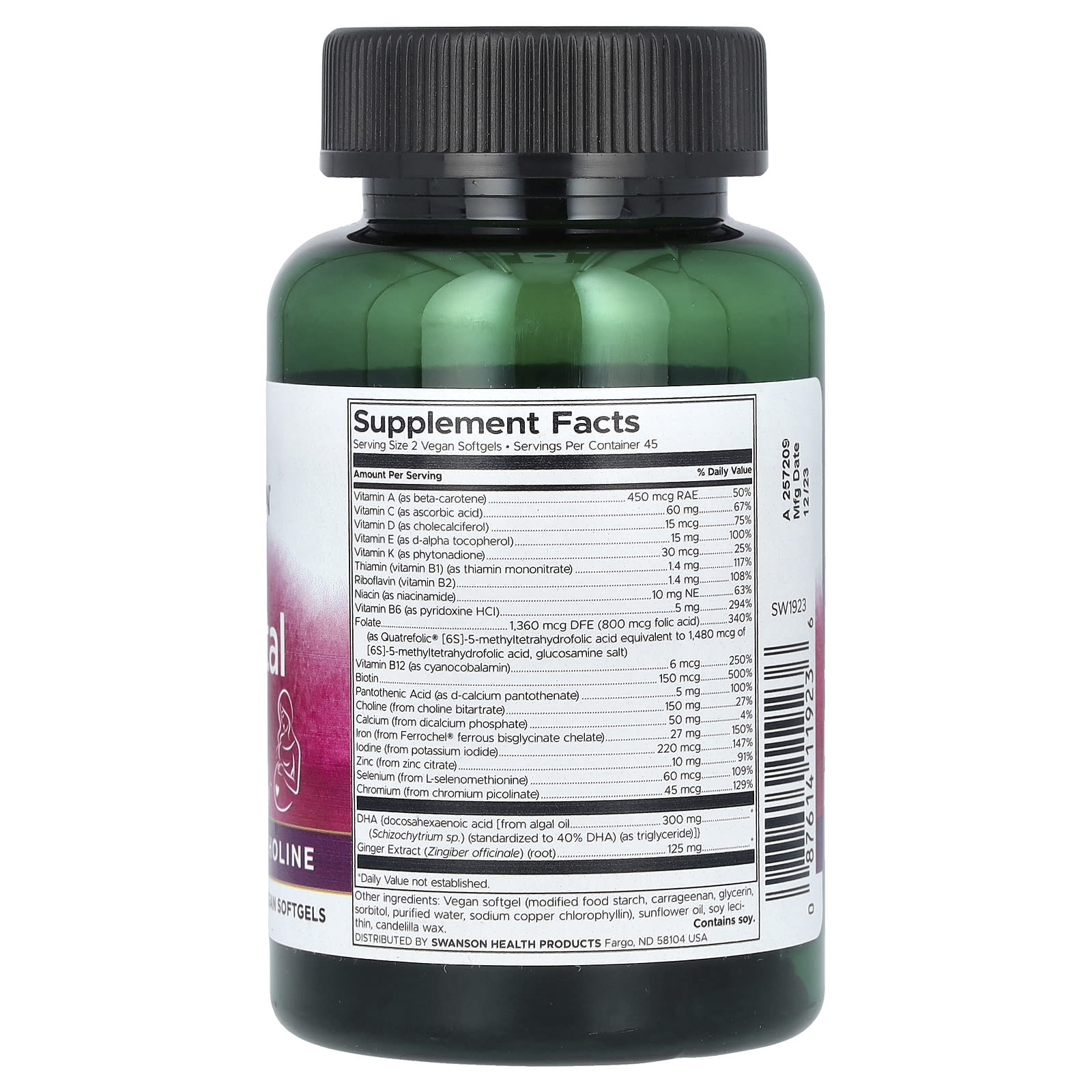 Swanson Multivitamínico Pré-natal Vegano 90 Cápsulas Softgel Veganas – Swanson Bebês e Crianças Mamães e Maternidade Suplementos Pré-natais Multivitaminas Pré-natais.