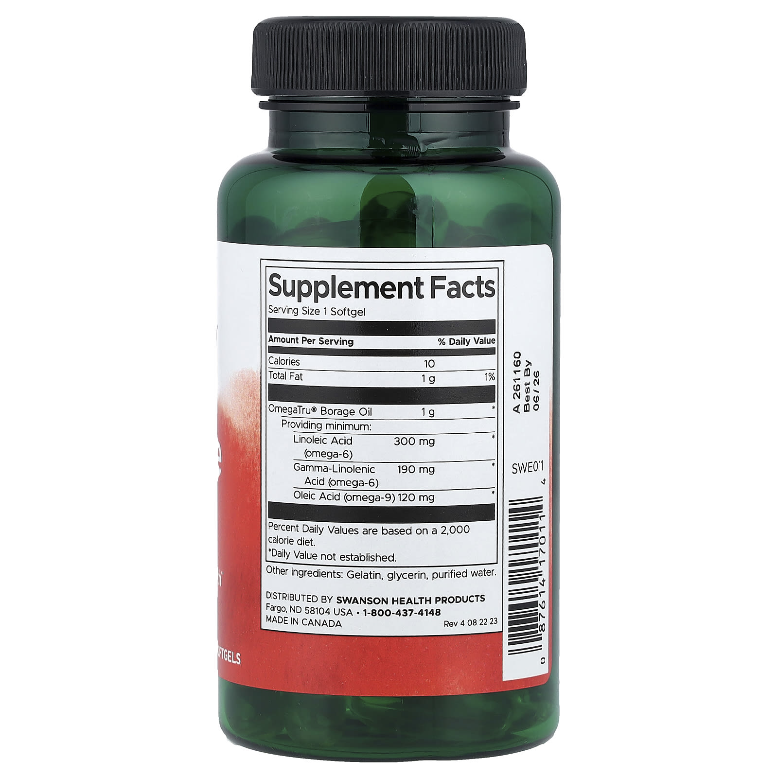 Swanson Óleo de Borragem 1 g 60 Cápsulas Softgel – Swanson Suplementos Ômegas e Óleos de Peixe (EPA/DHA) Óleo de Borragem.