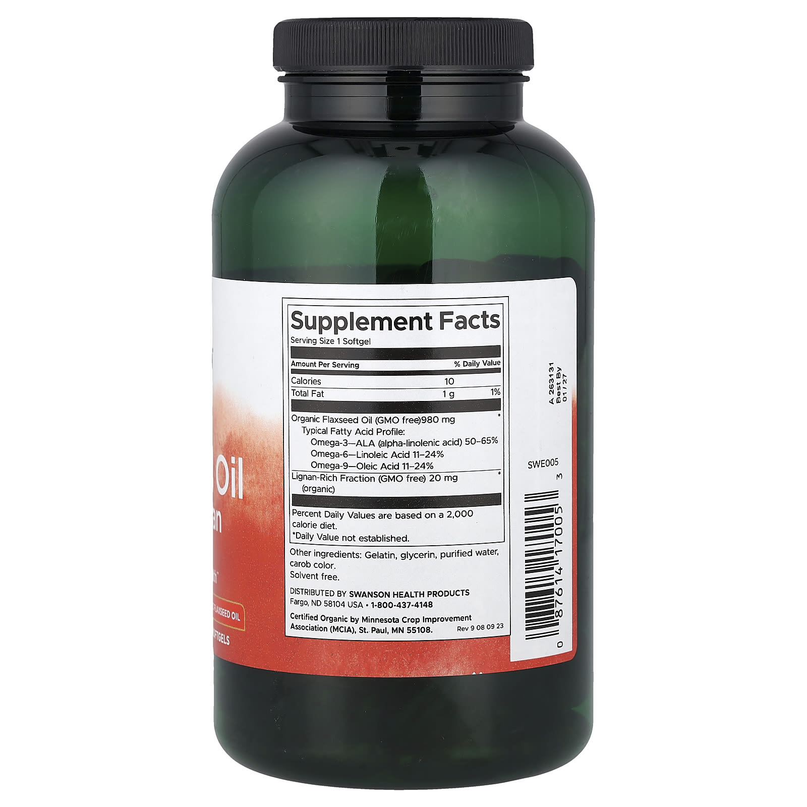 Swanson Óleo de Linhaça com Alto Teor de Lignanas 200 Cápsulas Softgel