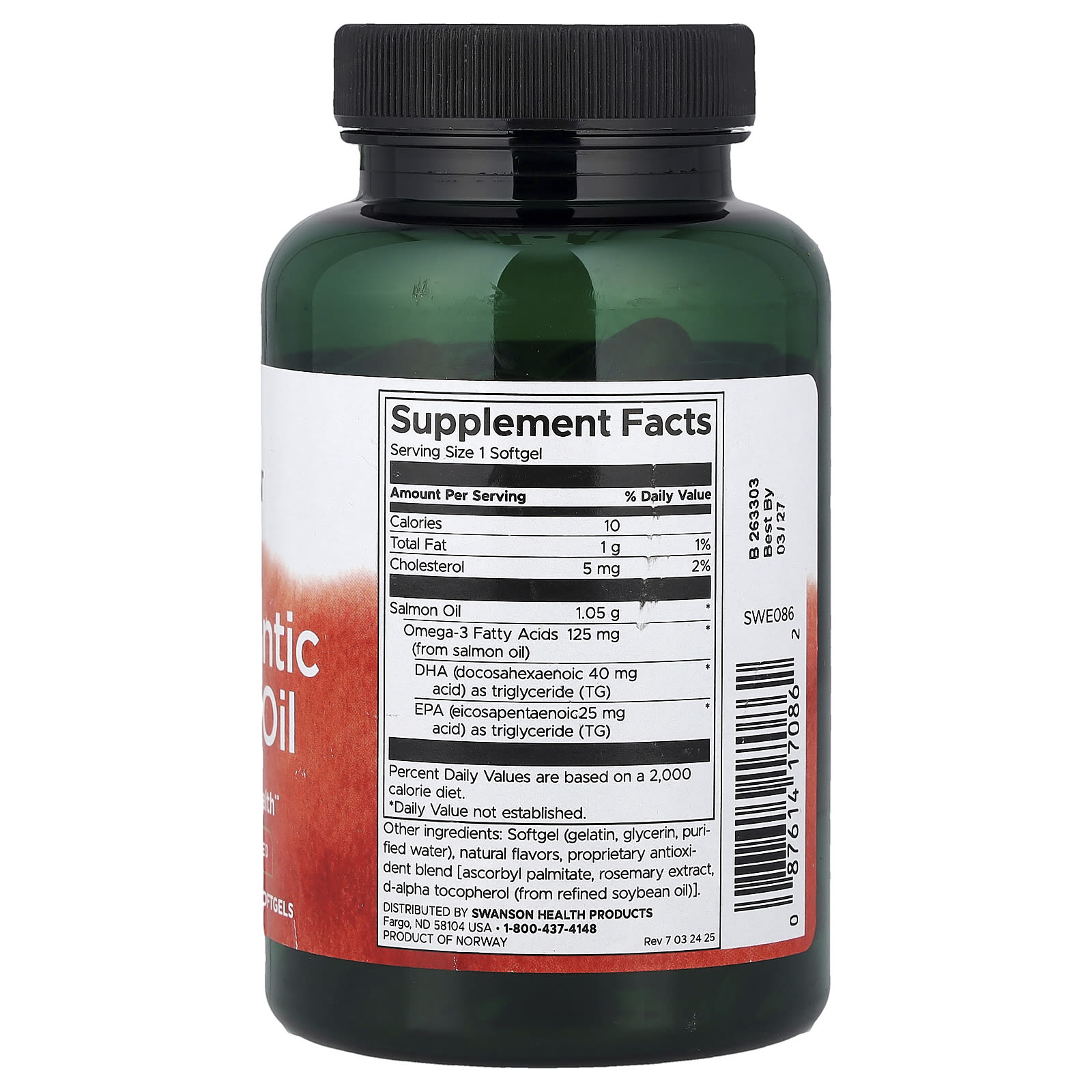 Swanson Óleo de Salmão do Atlântico Puro 90 Cápsulas Softgel – Swanson Suplementos Ômegas e Óleos de Peixe (EPA/DHA) Óleo de Salmão.