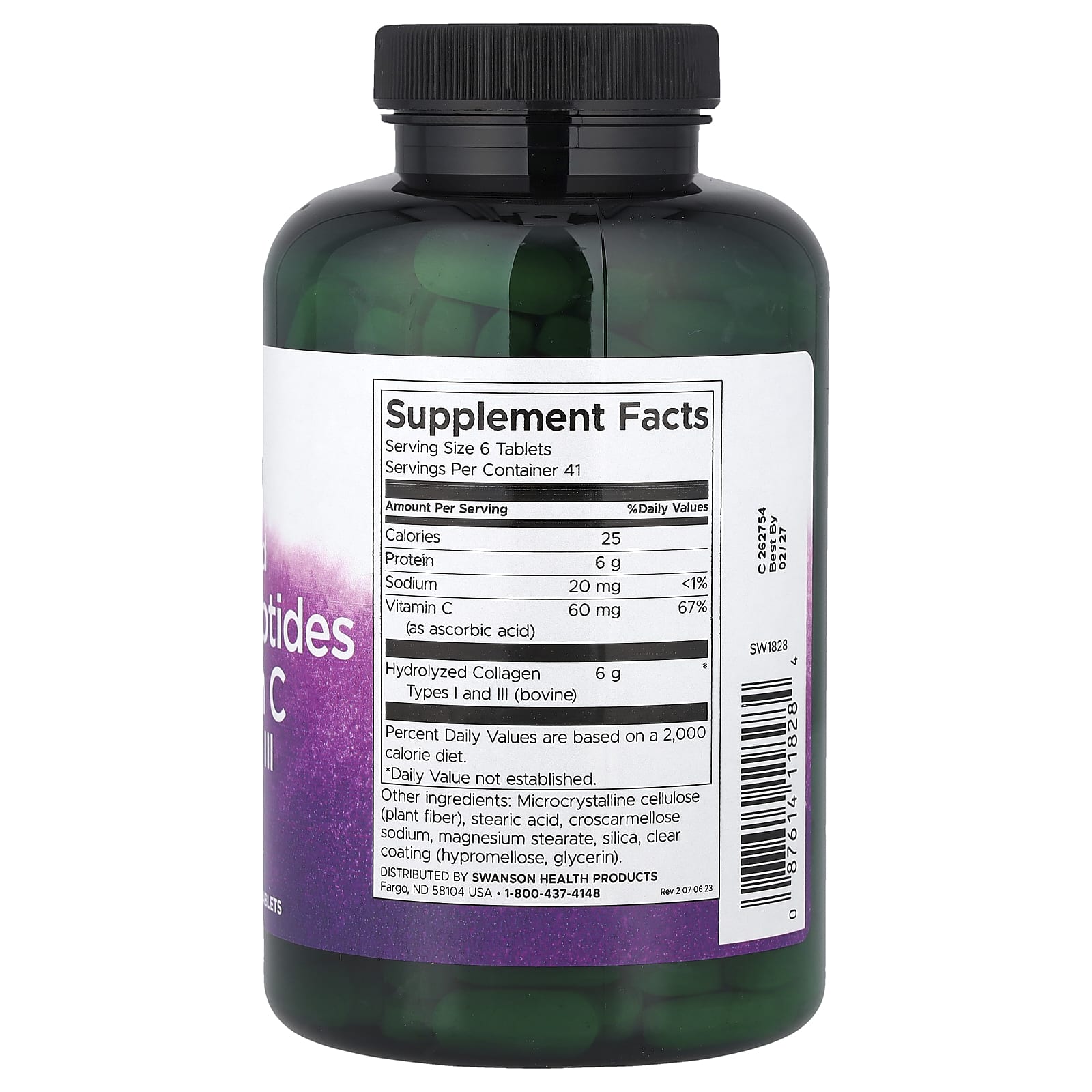Swanson Peptídeos de Colágeno Hidrolisado + Vitamina C 250 Comprimidos – Swanson Suplementos Ossos, Articulações e Cartilagem Colágeno, Suplementos.