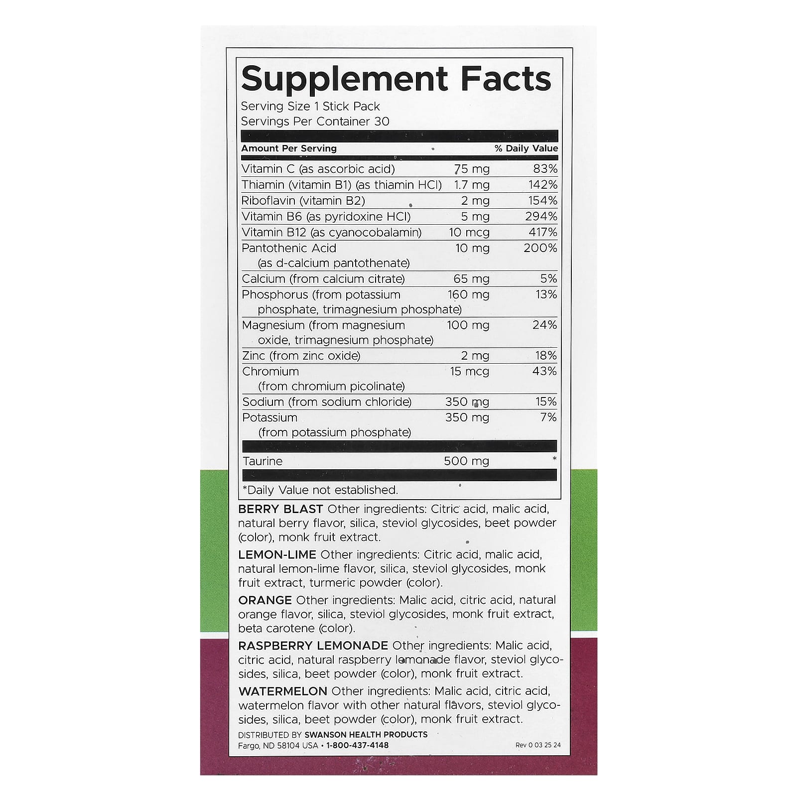 Swanson Simply Hydrate Mistura de Eletrólitos para Hidratação Embalagem Variada 30 Embalagens de Bastões 180 g (636 oz) – Swanson Nutrição Esportiva Hidratação e Eletrólitos.