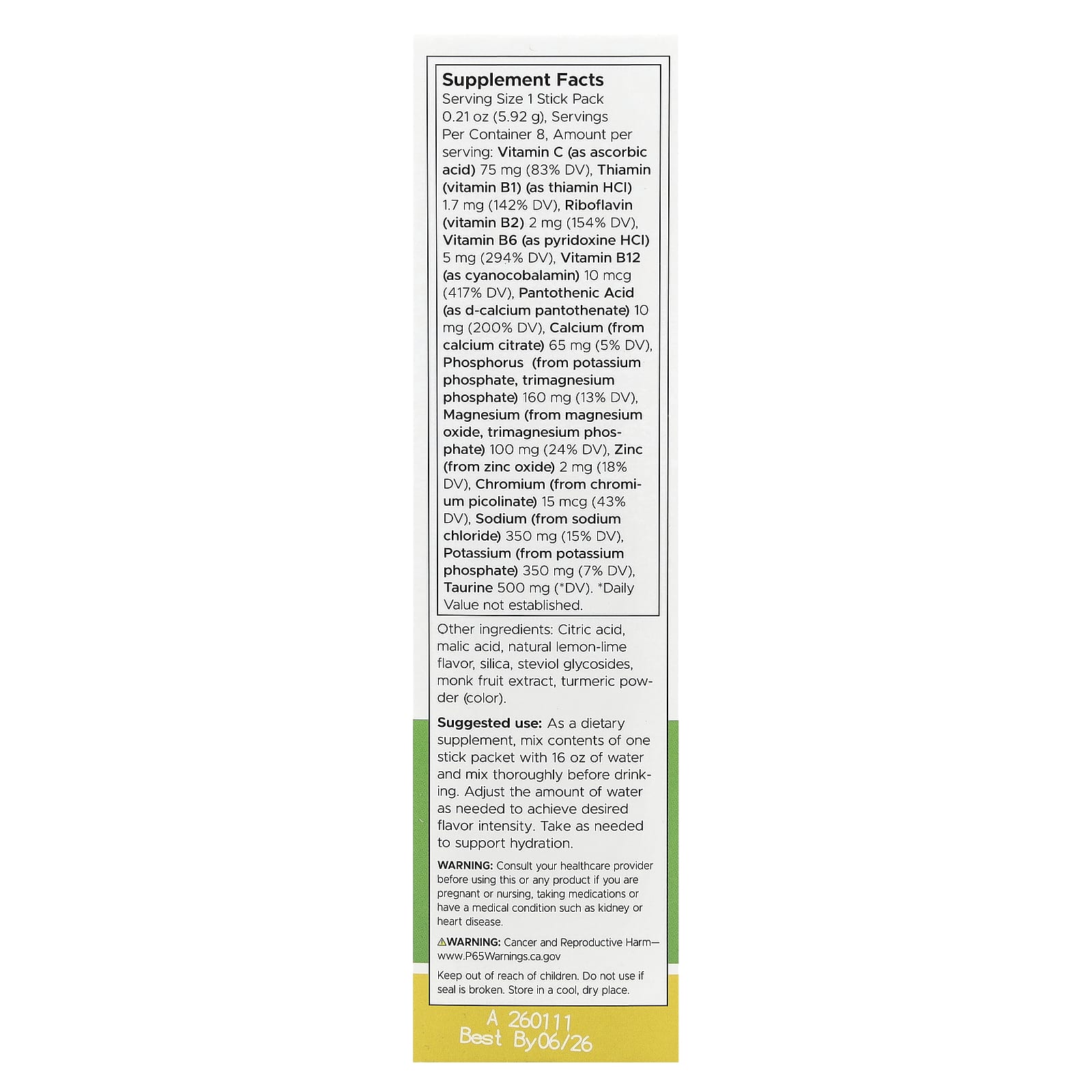 Como suplemento alimentar, misture o conteúdo de um sachê com 16 oz de água e misture bem antes de beber. Ajuste a quantidade de água conforme necessário para atingir a intensidade do sabor desejada. Tome conforme necessário para promover a hidratação.