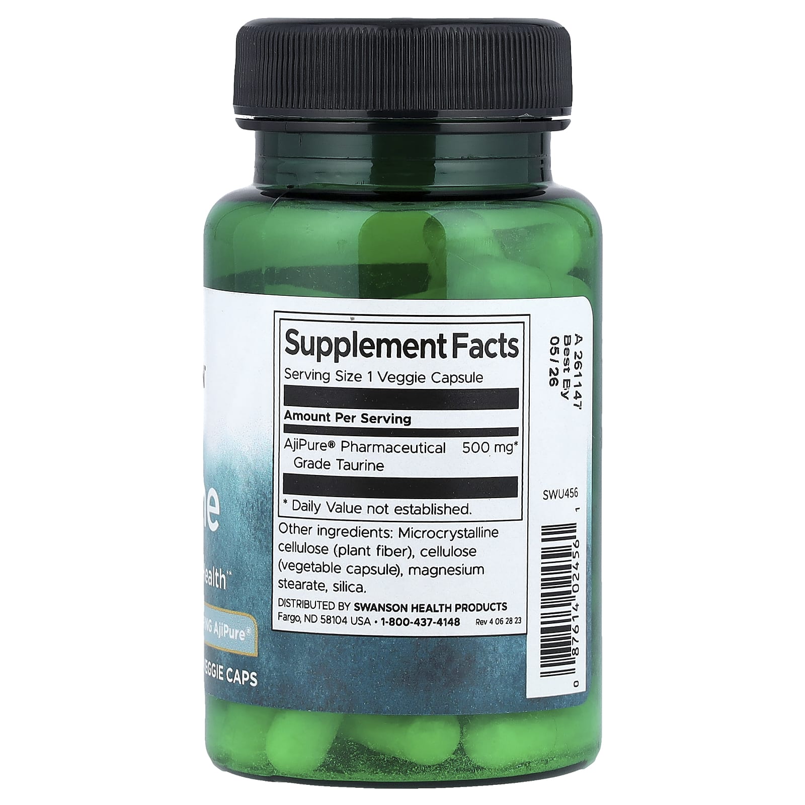 Swanson Taurina 500 mg 60 Cápsulas Vegetais – Swanson Suplementos Aminoácidos Taurina.