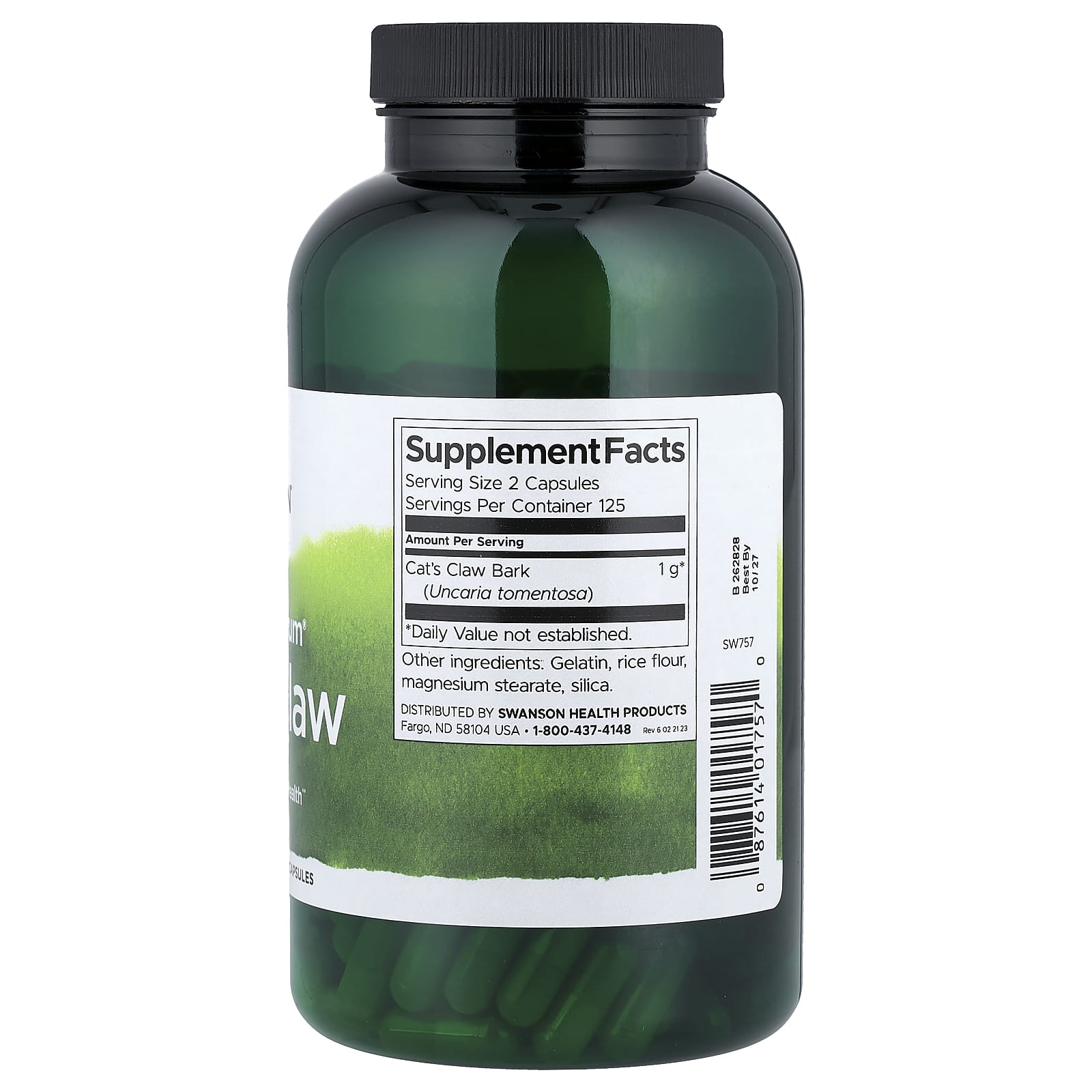 Swanson Unha-de-gato Full Spectrum® 250 Cápsulas (500 mg por Cápsula) – Swanson Suplementos Ervas Unha de Gato.