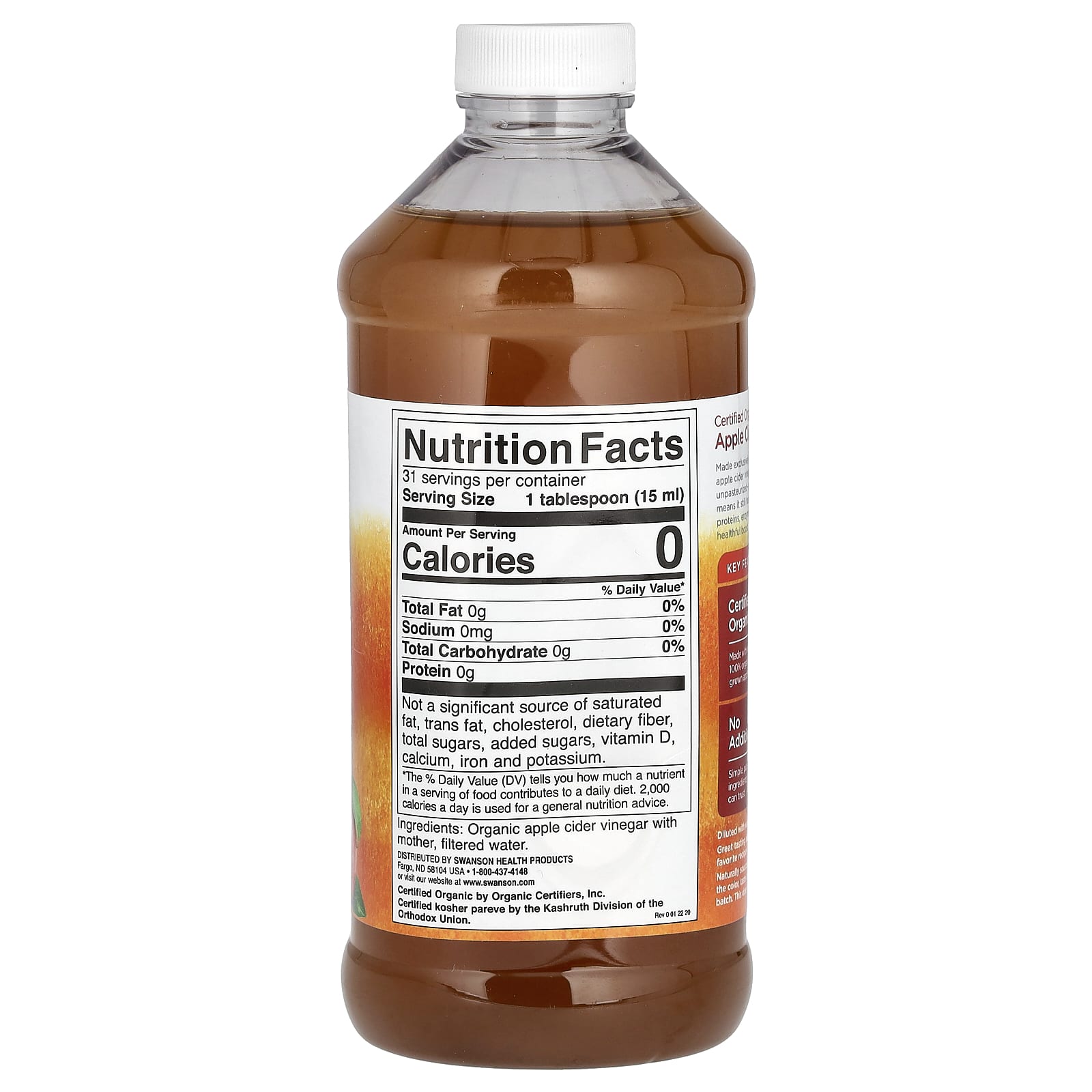 Swanson Vinagre de Cidra Orgânico Certificado com Mãe 473 ml (16 fl oz) – Swanson Alimentos Óleos e vinagres Vinagre Vinagre de Sidra de Maçã, Mercearia.