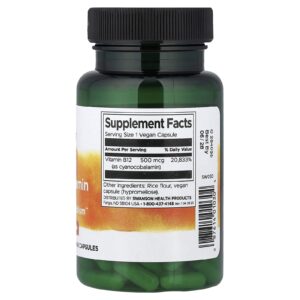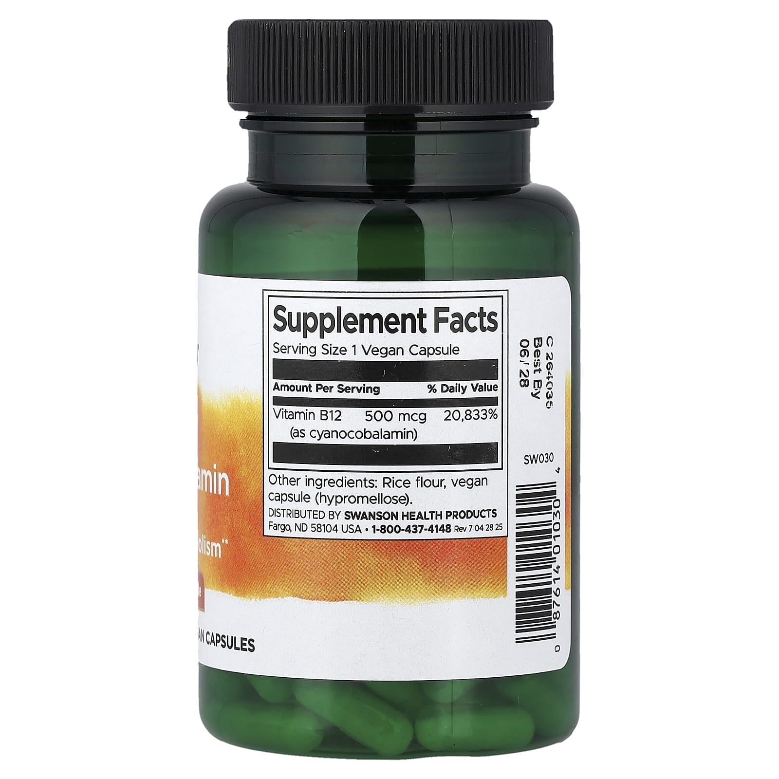 Swanson Vitamina B12 500 mcg 100 Cápsulas Veganas – Swanson Suplementos Vitaminas Vitamina B Vitamina B12 (Cobalamina).