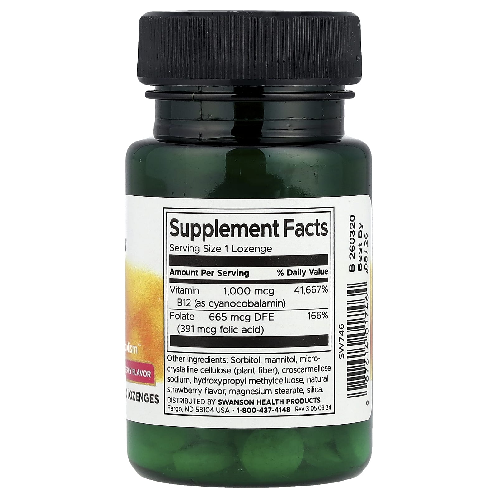 Swanson Vitamina B12 com Folato Sabor Morango 100 Pastilhas – Swanson Suplementos Vitaminas Vitamina B Vitamina B12 (Cobalamina).