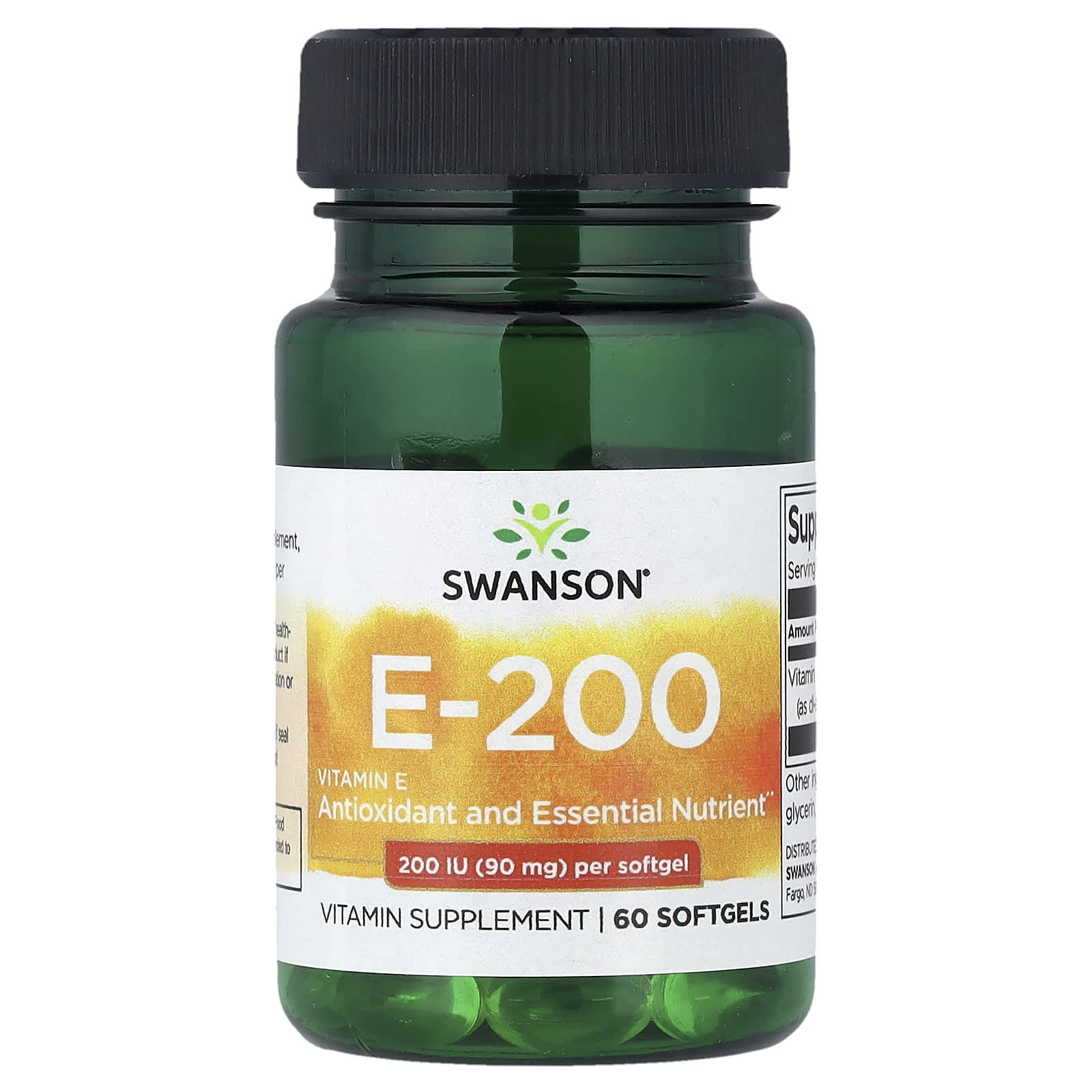 Swanson Vitamina E-200 90 mg (200 UI) 60 Cápsulas Softgel – Swanson Suplementos Vitaminas Vitamina E.
