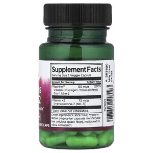 E se você já suplementar com vitaminas D e K ou as obter por meio de sua dieta? Agora, a Swanson oferece uma combinação de D3 e K2 em baixas doses só para você. As Vitaminas D3 e K2 de baixa dose da Swanson fornecem 50 mcg (2.000 UI) de D3 vegana derivada de líquen e 75 mcg de K2 sem soja, proveniente do grão-de-bico, como MK-7 em uma cápsula vegetal para ser tomada uma vez ao dia para ajudar a manter a saúde cardiovascular e promover a saúde cardiovascular e a promover a saúde cardiovascular. ossos saudáveis.