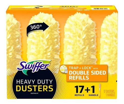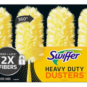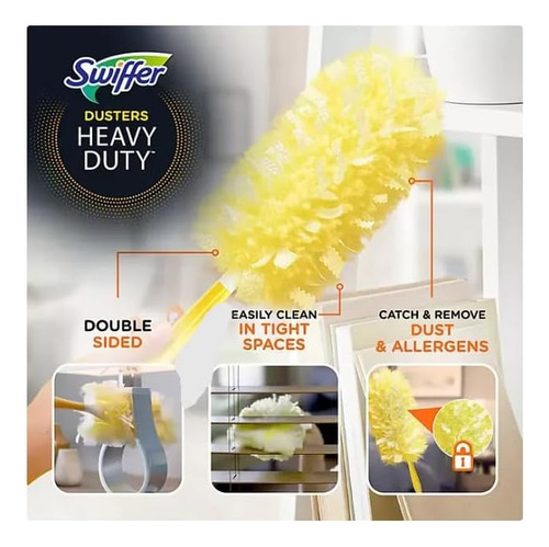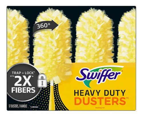 kit inicial Swiffer Duster Heavy Duty oferece uma solução conveniente e eficaz para tirar o pó de várias superfícies da sua casa.